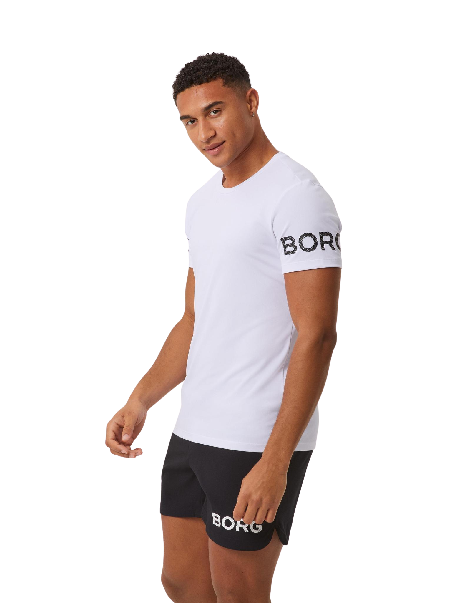The Björn Borg Borg T-shirt is a versatile and functional training tee, ideal for padel and other high-intensity workouts. Made from a soft, stretchy fabric in primarily recycled polyester, it ensures both comfort and freedom of movement on court. The T-shirt features a classic crew neck and a regular fit with extra length and a longer back for optimal coverage – even during smashes and dynamic rallies. Insert panels under the arms and a raised armhole construction provide extra ventilation and freedom of movement. The iconic Borg logos on the sleeves complete the sporty look.