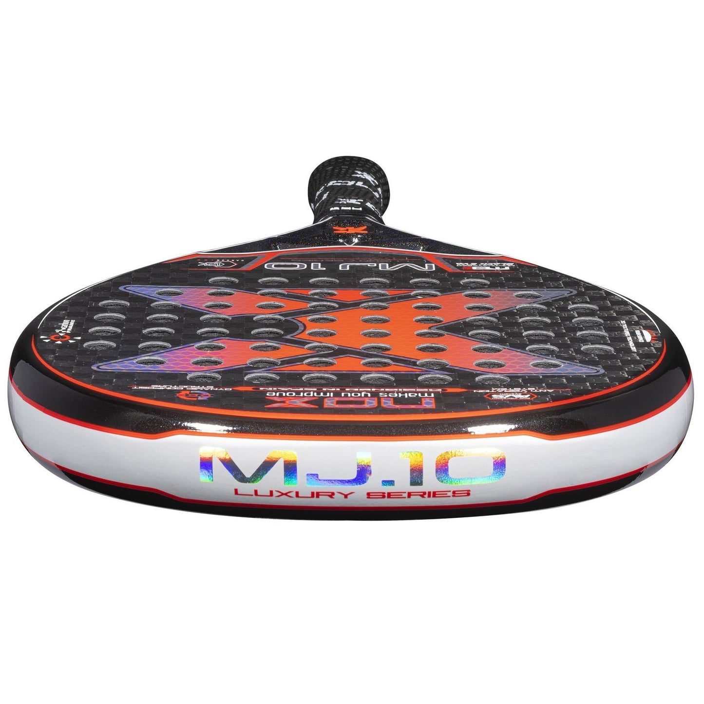 NB: Offiziell, die Die Oberfläche des Schlägers ist rau, aber im direkten Vergleich beispielsweise mit den rauen Oberflächen von Bullpadel schätzen wir, dass die Oberfläche des MJ10 Luxury eher konturiert als rein rau ist.