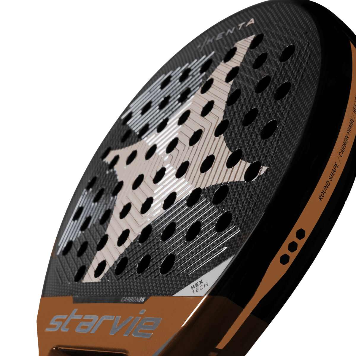 The surface of the racket is constructed with Starvie's new Hex Tech technology, which involves a hexagonal, rough pattern for increased precision and durability.